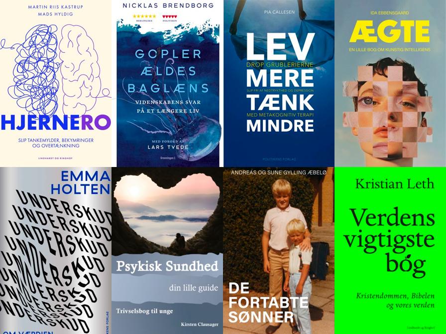 Mange har søgt ind i bøger, der hjælper os til mere ro i hovedet og en bedre hverdag. Hjernero af Mads Hyldig og Martin Riis Kastrup guider til at slippe tankemylder og bekymringer, mens Pia Callesen i Lev mere tænk mindre viser vejen til at droppe grublerier og få styr på nedtrykthed og depression med metakognitiv terapi.