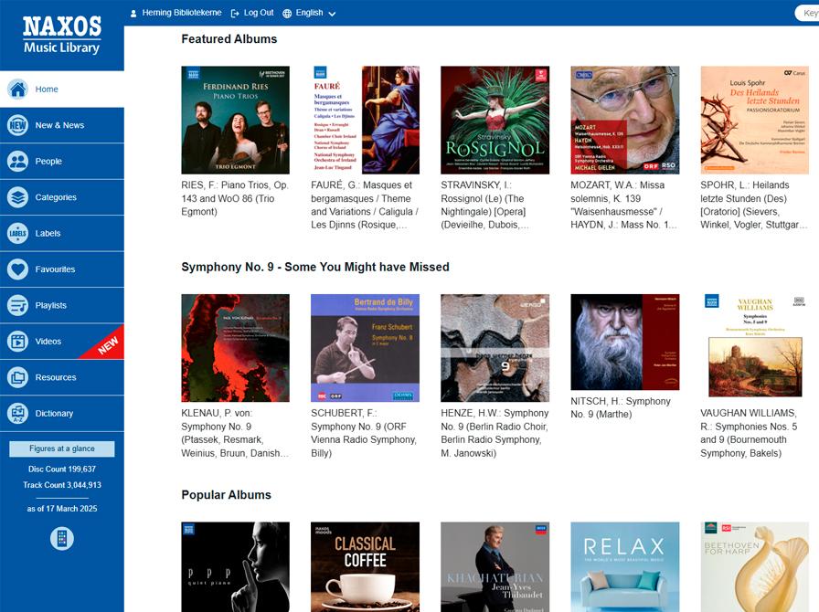 Naxos Music Library er verdens største online bibliotek for klassisk musik og et slaraffenland for dig, som ikke blot vil nøjes med en indspilning af et værk, men som gerne vil høre forskellige orkestre, dirigenter, sangere m.fl. formidle værket præcis som de synes, at det skal lyde.